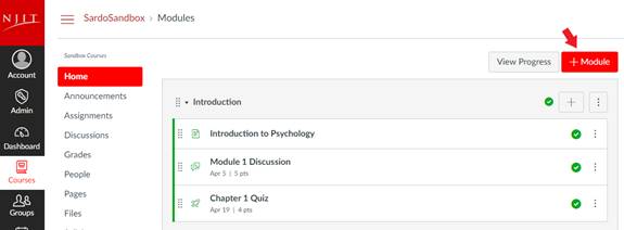 You can add a module to your course and organize your course by week, topic, or another category.